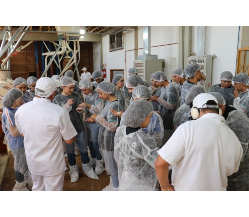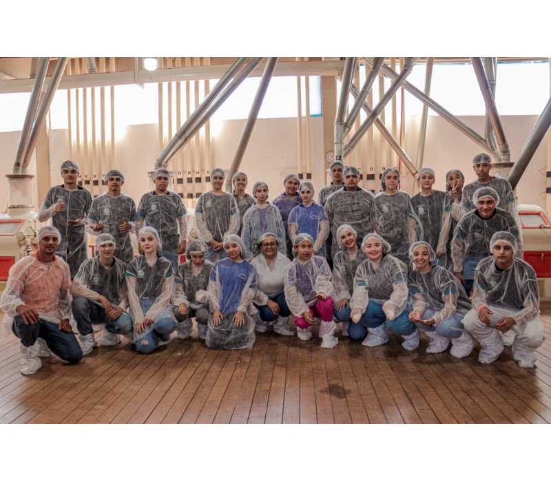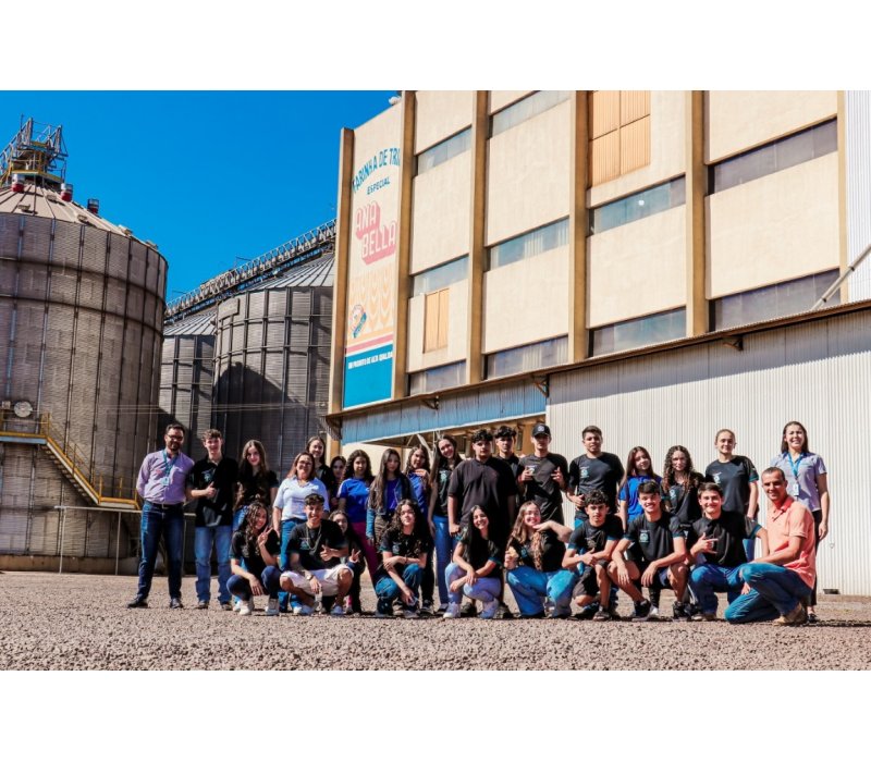Na tarde do dia 22 de outubro, um grupo de 26 alunos e dois professores do Colégio Estadual Professor João Farias da Costa, de Nova Cantu, participou de uma visita técnica ao Moinho de Trigo da Coagru, localizado em Campina da Lagoa. A atividade teve como objetivo aproximar os estudantes do processo industrial de produção de farinha de trigo e ampliar seus conhecimentos sobre a cadeia produtiva do grão.
