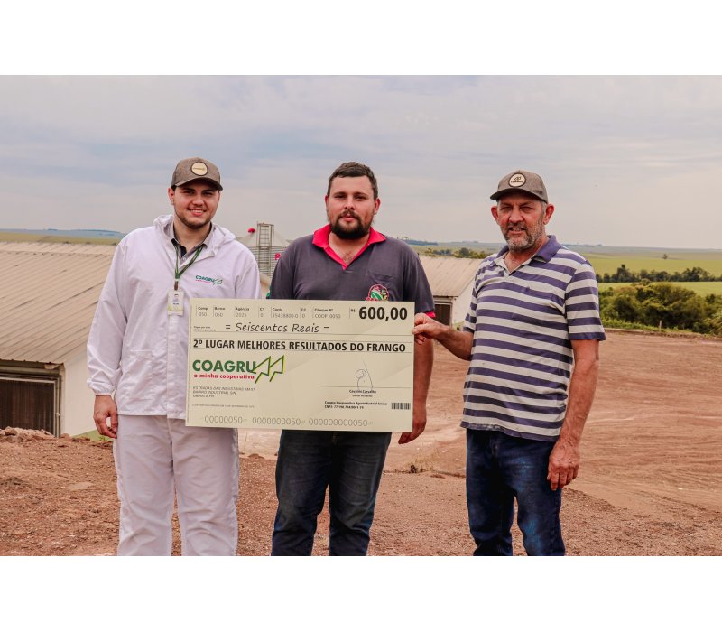 “É uma grande satisfação receber esta premiação pelo segundo lugar. Enfrentamos desafios, mas com atenção ao manejo e aos cuidados de segurança, conseguimos reverter a situação e terminar o lote bem. Seguimos rigorosamente a troca de calçados, o uso correto das botas e a observação da cama dos aviários. A ração e os pintinhos vieram de excelente qualidade, e a assistência técnica da Coagru foi sempre rápida e eficiente. Minha dica é: qualidade e dedicação fazem toda a diferença.”