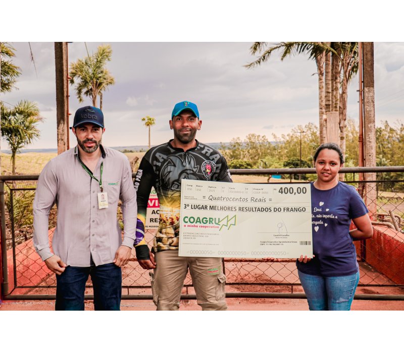 “Estou muito feliz com o resultado deste lote. É gratificante conquistar o primeiro lugar e ver que todo o trabalho valeu a pena. Ser premiado é sinal de que o esforço deu resultado. Foi um mês de muito trabalho, mas tudo correu bem porque fizemos o manejo certo. Os pintinhos vieram bons, e a ração, junto com o suporte técnico da Coagru, foram excelentes. Esse resultado é fruto de um trabalho dedicado e da parceria no dia a dia. Quando as mãos se unem, o resultado aparece.”