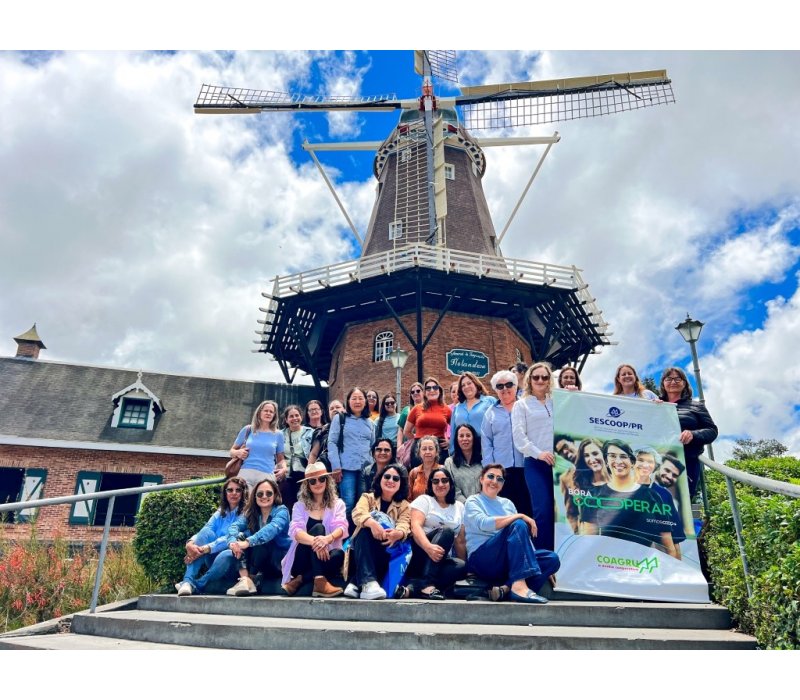 Em Carambeí, as participantes visitaram o Parque Histórico, o vilarejo Het Dorp e uma propriedade de cooperado da Frísia, encerrando o roteiro com vivências inspiradoras sobre o cooperativismo e a cultura holandesa.