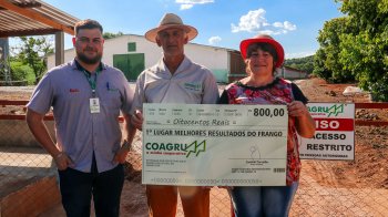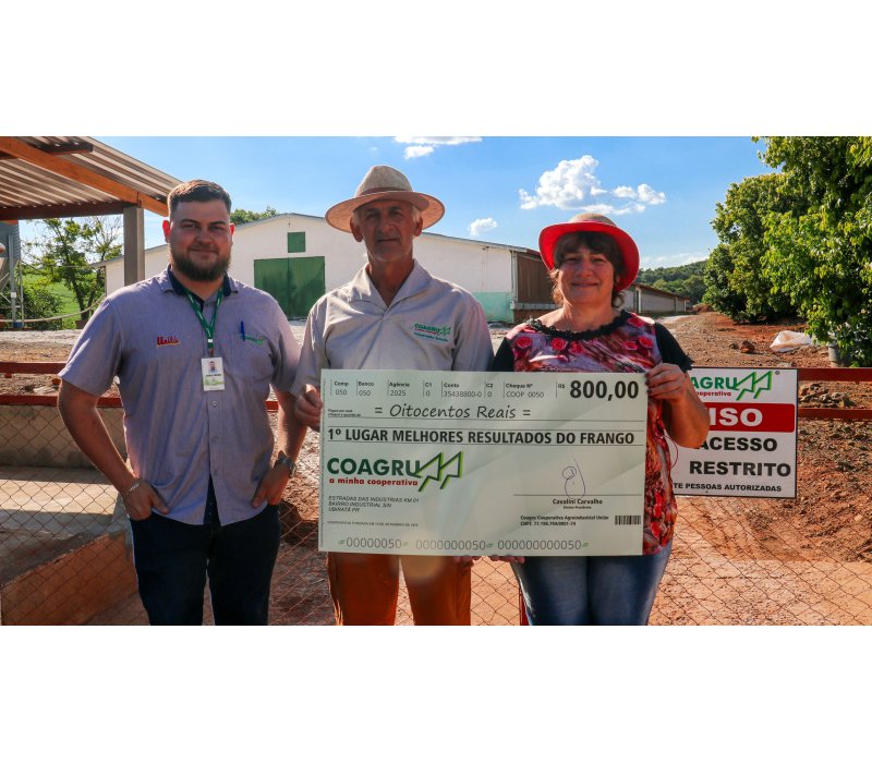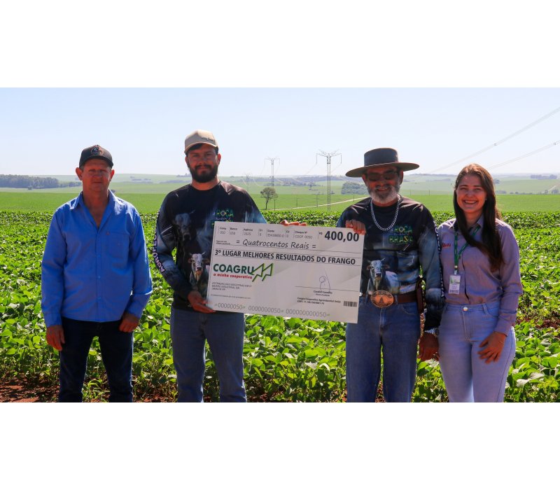 “Conseguir o segundo lugar é uma sensação de reconhecimento do nosso trabalho. Enfrentamos um lote desafiador por causa do clima instável — frio, calor e chuva exigindo ajustes constantes na ambiência. Com dedicação e monitoramento contínuo, alcançamos um ótimo resultado. As rações e os pintainhos da Coagru vieram com excelente qualidade, o que faz muita diferença no desempenho. Também destaco o apoio da equipe técnica, sempre presente quando precisamos. Trabalhamos em família e, com esforço conjunto, colhemos esse resultado tão satisfatório.”