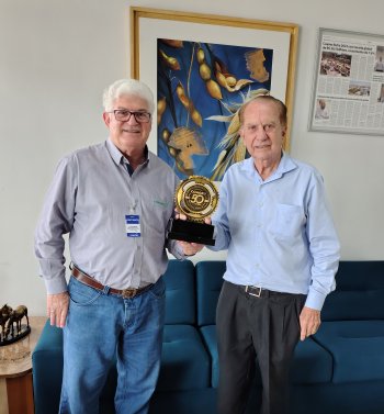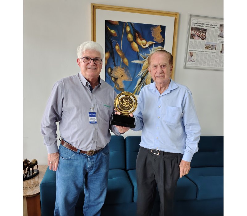 Durante a visita, o presidente Cavalini entregou a Galassini o troféu comemorativo dos 50 anos da Coagru, símbolo de uma trajetória construída com trabalho, solidez e compromisso com o desenvolvimento regional. Na ocasião, destacou sua admiração pela Coamo, referência nacional no cooperativismo agroindustrial, ressaltando a importância de sua atuação para o fortalecimento do setor e para a economia do país.