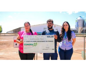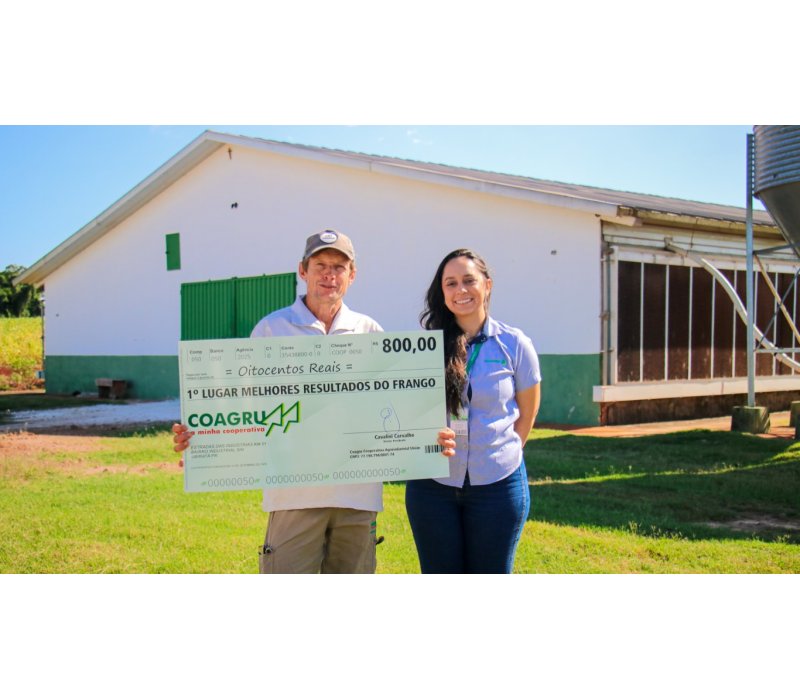 “Esse lote foi tranquilo de manejar, sem grandes dificuldades. Os pintainhos vieram com ótima qualidade e as condições de temperatura favoreceram o bom desempenho das aves. A ração, bem peletizada, contribuiu para melhor aceitação e resultado final, mostrando a qualidade do trabalho da Coagru. O acompanhamento da extensionistafoi fundamental ao longo do processo. Ser premiado é muito gratificante e motiva a buscar sempre melhores resultados. Para quem está começando, dedicação e empenho são essenciais.”