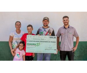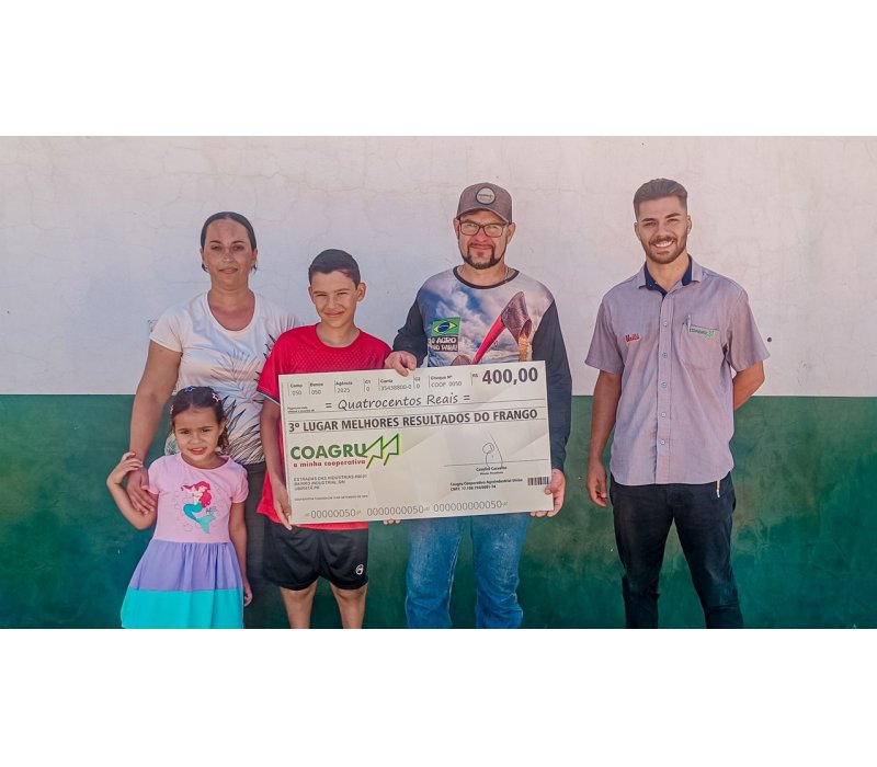 Fiquei muito satisfeito e surpreso com esse resultado e com a conquista do primeiro lugar, que marcou um novo recorde da Coagru. Esse desempenho é fruto da união de vários fatores: ração e pintainhos de qualidade, manejo adequado, assistência técnica constante e um clima favorável. A Coagru oferece um suporte excelente, com técnicos sempre disponíveis e ferramentas como o aplicativo para pedido de ração, que facilita muito a rotina. Sou grato a Deus por esse reconhecimento e incentivo todos os produtores a nunca desistirem.