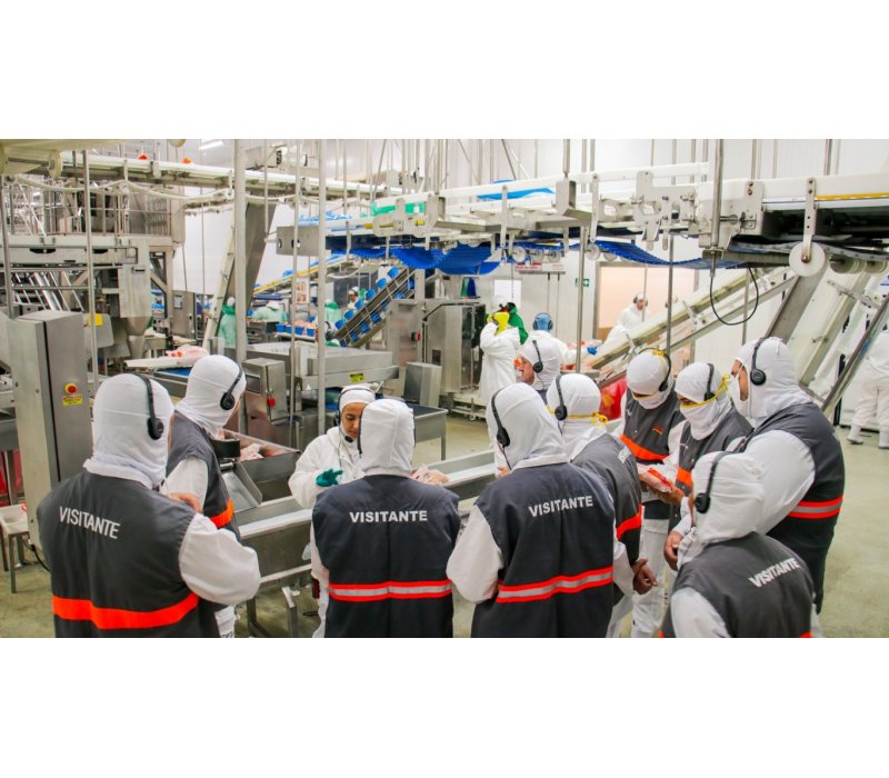 A programação teve como foco a análise dos processos industriais e a integração entre os elos da cadeia, desde o planejamento das granjas para alojamento até o abate e a industrialização. Durante a visita, a equipe acompanhou os fluxos operacionais da planta frigorífica, conheceu os protocolos de biosseguridade, os programas de autocontrole, os sistemas de rastreabilidade e os critérios de qualidade adotados para atender aos padrões exigidos pelo mercado, além da padronização de processos e indicadores de desempenho industrial.