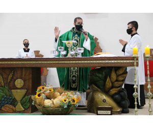 O Padre Fernando Sales, que presidiu a celebração, fez uma linda homenagem aos agricultores, citou a importância de plantarmos boas sementes tanto no solo quanto na vida espiritual, "a boa colheita se dá pelo trabalho do homem e também por suas boas ações" destacou o sacerdote. Ao término da celebração as sementes foram abençoadas e depois distribuídas aos agricultores para serem lançadas ao solo na próxima safra de soja.
