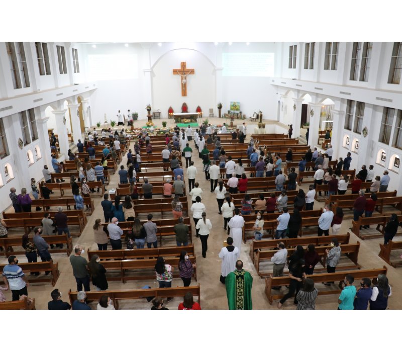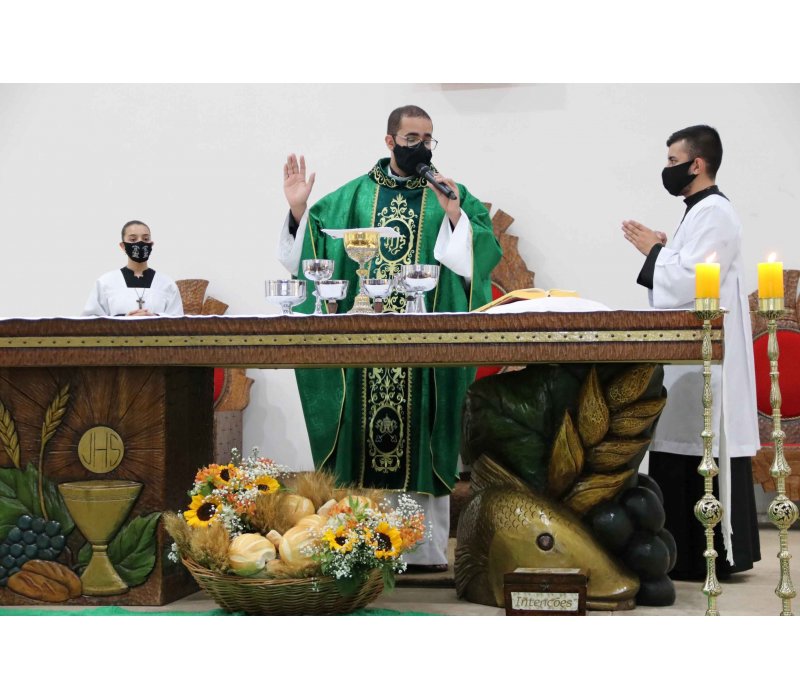 Neste último sábado, dia 24 de julho, aconteceu em Campina da Lagoa na Paróquia Santa Teresinha a missa em ação de graças pela colheita, momento este em que os cooperantes da Coagru puderam agradecer pelos frutos de suas colheitas e mais uma vez pedir as bênçãos de Deus para a próxima safra. Todas as medidas de combate a Covid 19 foram estabelecidas como o uso de máscaras, álcool em gel e o distanciamento social. A celebração foi um momento de fé e agradecimento da qual participaram diversas famílias de agricultores, colaboradores da Coagru e da comunidade como um todo. Para as famílias que não puderam participar presencialmente da missa houve a transmissão pela rádio local, redes sociais da paróquia e pelo canal do YouTube “COAGRU INFORMATIVO”, ferramentas importantes de comunicação principalmente neste período de pandemia, o que possibilita que mais pessoas possam compartilhar desse momento de oração e acolhimento.