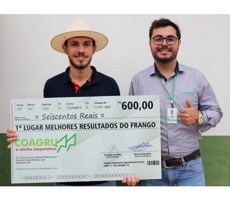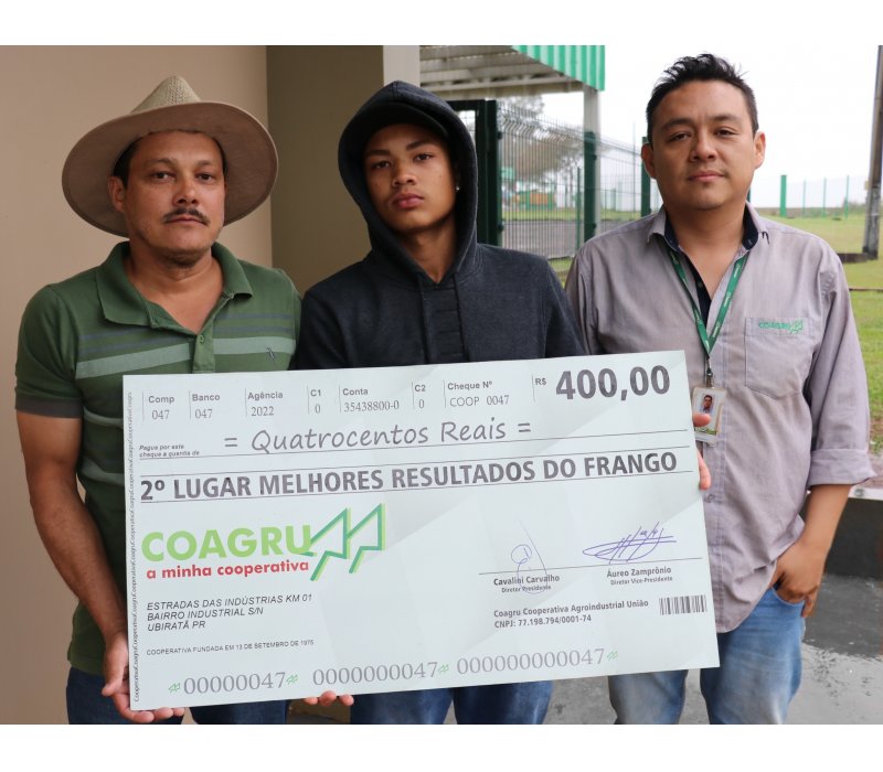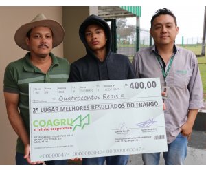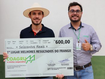“Para ter um bom resultado, não podemos deixar que se tenha muita oscilação de temperatura dentro do aviário, temos que ficar atentos aos detalhes, a qualidade dos pintainhos e da ração são importantes também, assim como, a assistência técnica avícola da Coagru que está sempre de prontidão para nos atender, pois o manejo do frango é muito delicado. Quero agradecer a Deus por trabalhar nesse ramo e a Coagru pela oportunidade e o reconhecimento por ter alcançado um dos melhores resultados da integração nesse mês. Temos que ter boa vontade para trabalhar com frango e nunca deixar de tirar nossas dúvidas com os técnicos, ter foco e dedicação, assim, com certeza, alcançaremos bons resultados”.