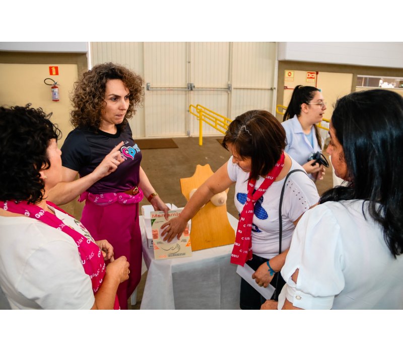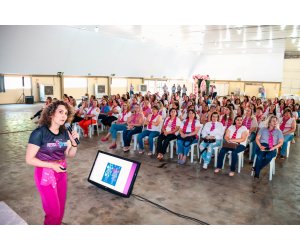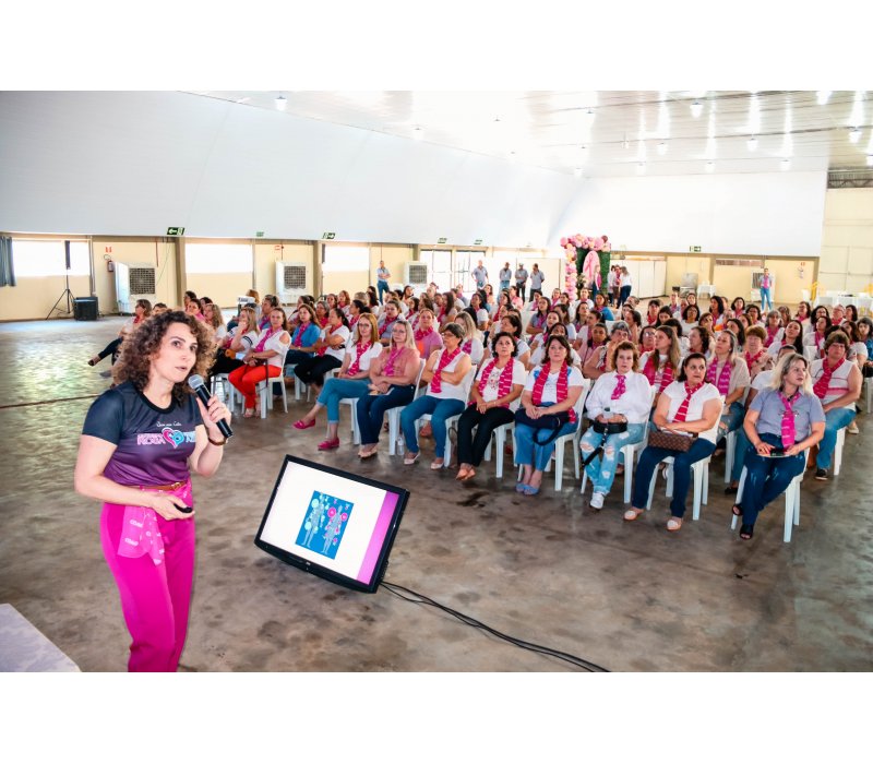 Também em parceria com a Secretaria de saúde, a Drª Katia Sinara Milani, realizou um bate papo com as mulheres falando da campanha Outubro Rosa e também orientando sobre a importância do diagnóstico precoce. Na sequência esteve presente a psicóloga Valdirene Razera que falou da importância das relações humanas para a saúde física e mental, ela realizou uma dinâmica que falava do tema da sua palestra “O laço que nos Une”.