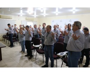Mario Bedeu, gerente da divisão agrícola, apresentou a capacidade estática de armazenamento de grãos, assim como, o volume a ser embarcado nos próximos dias. Na sequência, foram discutidas e alinhadas às metas de recebimento de soja para cada unidade.