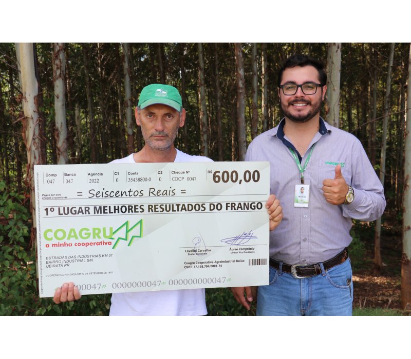“Devemos ter uma ambiência adequada para que os frangos tenham uma boa conversão e alcancem um bom peso. É muito gratificante esse reconhecimento da Coagru, pois nos incentiva cada vez mais irmos em busca dos melhores resultados. Quero agradecer a assistência técnica avícola que é muito importante nesse processo. Quero agradecer também ao Marcos e Amauri Campos que nos dão o apoio necessário para alcançarmos os resultados”.