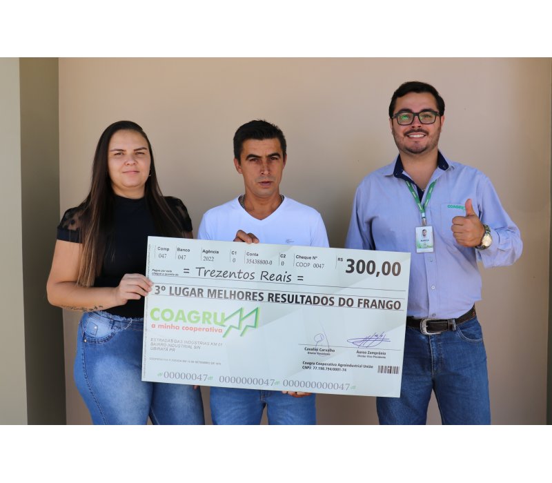 “Temos que estar atentos as necessidades dos pintainhos, cuidar da ambiência trabalhar com amor e focar no objetivo de alcançar o melhor resultado possível. Quero parabenizar a Coagru pelo fornecimento de insumos de boa qualidade e a assistência técnica avícola que está sempre de prontidão a qualquer horário para nos atender, tirando dúvidas e nos ajudando com o manejo do aviário. É muito gratificante receber essa bonificação da Coagru, isso nos deixa mais motivados para buscarmos sempre os melhores resultados”.