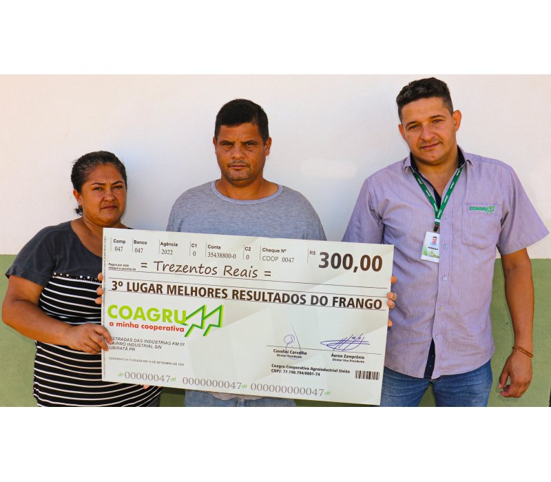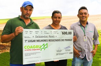 “Estou há muitos anos na atividade avícola da Coagru e eu percebo que manter a biosseguridade, ambiência e um manejo correto é essencial para chegar em um bom resultado. Fiquei super feliz em receber o prêmio de melhores resultados pois vemos que somos valorizados pelo nosso esforço na cadeia produtiva. Sabemos que esse frango que sai do nosso aviário, que cuidados com tanta dedicação vai para várias partes do mundo, e nós ficamos muito felizes em estar cooperando com esse desenvolvimento”.