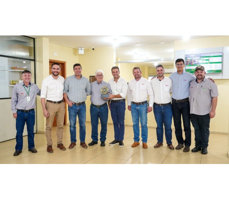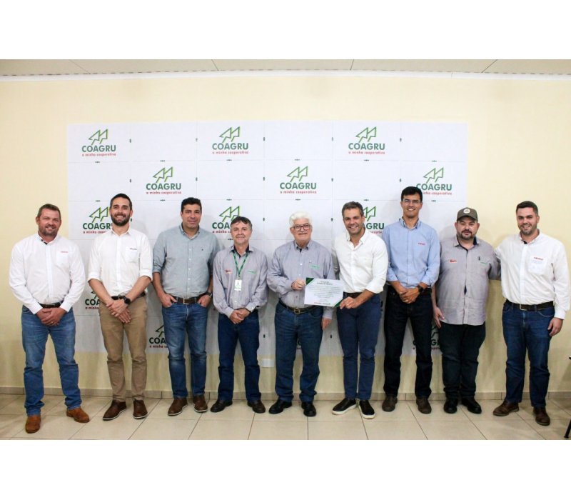 Durante o encontro, a equipe da UbyAgro prestou uma homenagem especial à Coagru pelos seus 50 anos de história, entregando uma placa comemorativa em reconhecimento à trajetória e ao impacto da cooperativa no fortalecimento do setor agroindustrial da região.