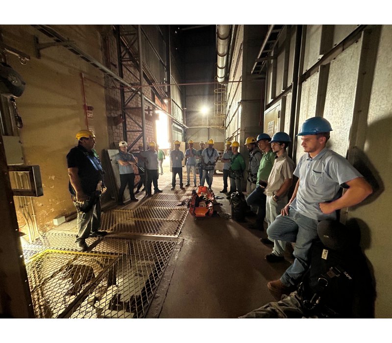 No dia 9 de setembro foi a vez da Reciclagem NR 33 – Espaço Confinado para Vigias e Trabalhadores Autorizados, conduzida pelo instrutor Marcio José Cardoso. O treinamento teve 8 horas de carga horária e envolveu 15 colaboradores, com foco na atualização de práticas como o uso correto dos equipamentos de proteção, o reconhecimento de riscos e a execução dos procedimentos operacionais.