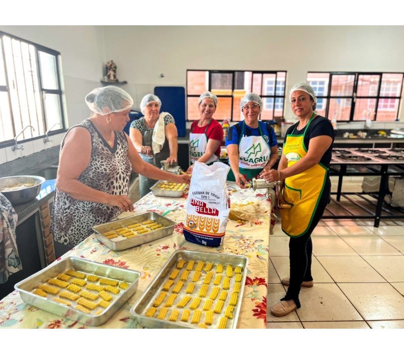 No dia 18 de setembro, as integrantes do Grupo Feminino CooperMulher (GFC) São João se reuniram no Salão da comunidade para uma ação beneficente. Com a farinha de trigo Anabella, doada pela Coagru, o grupo passou o dia preparando bolachas, pães caseiros e roscas, colocando todo o carinho na produção destinada à doação.