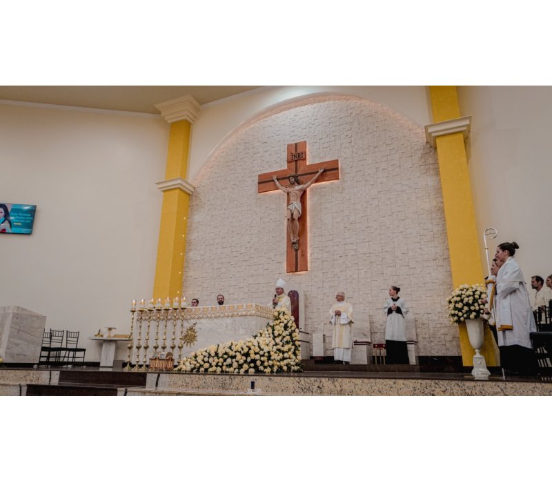 A celebração foi presidida por Dom Evandro, com a participação do pároco local, padre Ricardo Arica, que também conduziu momentos festivos antes e após a missa. O tempo passou despercebido, tamanha a intensidade das orações, cânticos e expressões de devoção.