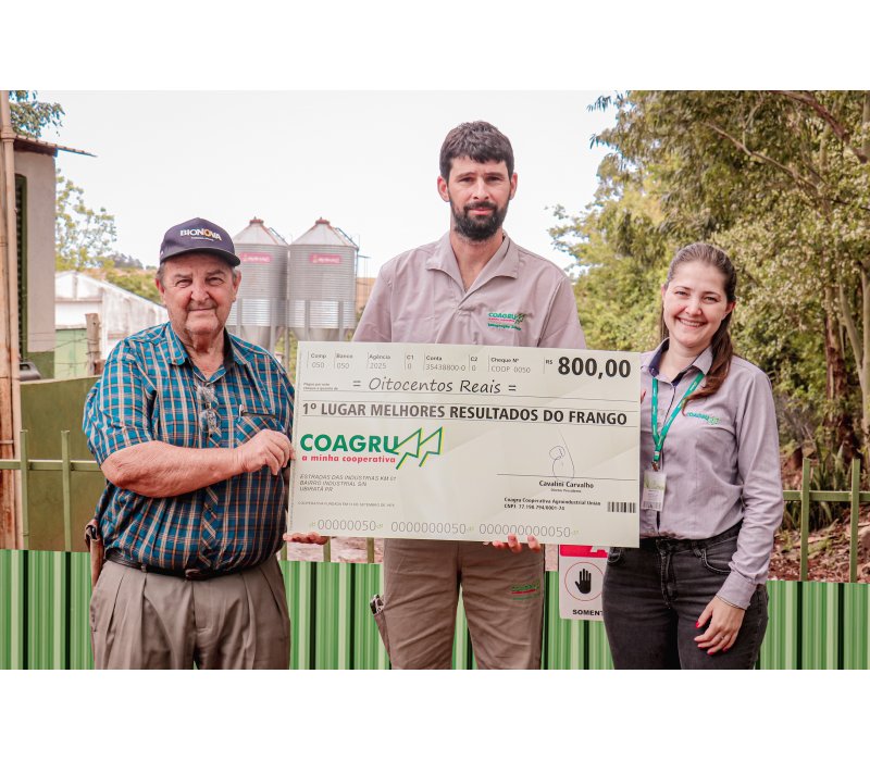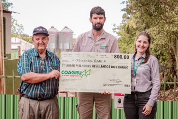 “Estou muito feliz com o resultado deste lote. É gratificante conquistar o primeiro lugar e ver que todo o trabalho valeu a pena. Ser premiado é sinal de que o esforço deu resultado. Foi um mês de muito trabalho, mas tudo correu bem porque fizemos o manejo certo. Os pintinhos vieram bons, e a ração, junto com o suporte técnico da Coagru, foram excelentes. Esse resultado é fruto de um trabalho dedicado e da parceria no dia a dia. Quando as mãos se unem, o resultado aparece.”