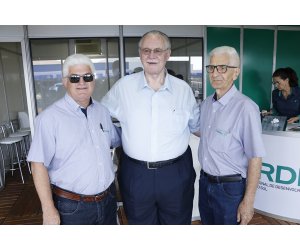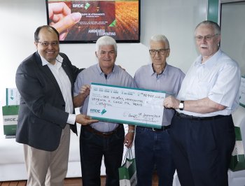 Os diretores da Coagru Áureo Zamprônio e Cavalini Carvalho, presidente e vice-presidente respectivamente, estiveram presentes no Show Rural Coopavel nesta última quinta-feira, dia 08. Dentre os compromissos estava a assinatura de um convênio com Banco Regional de Desenvolvimento do Extremo Sul (BRDE), para a liberação de empréstimo na ordem de R$ 20 milhões, os quais serão utilizados na construção de aviários. Também foram liberados R$ 10.975.000,00 para investimentos nas atividades da cooperativa que serão aplicados na construção de silos, secadores e máquinas de pré-limpeza na unidade de Ubiratã. Pelo BRDE esteve presente Orlando Pessuti, presidente, e Carmem Truite, gerente de operações adjunta para produtores rurais e convênios.