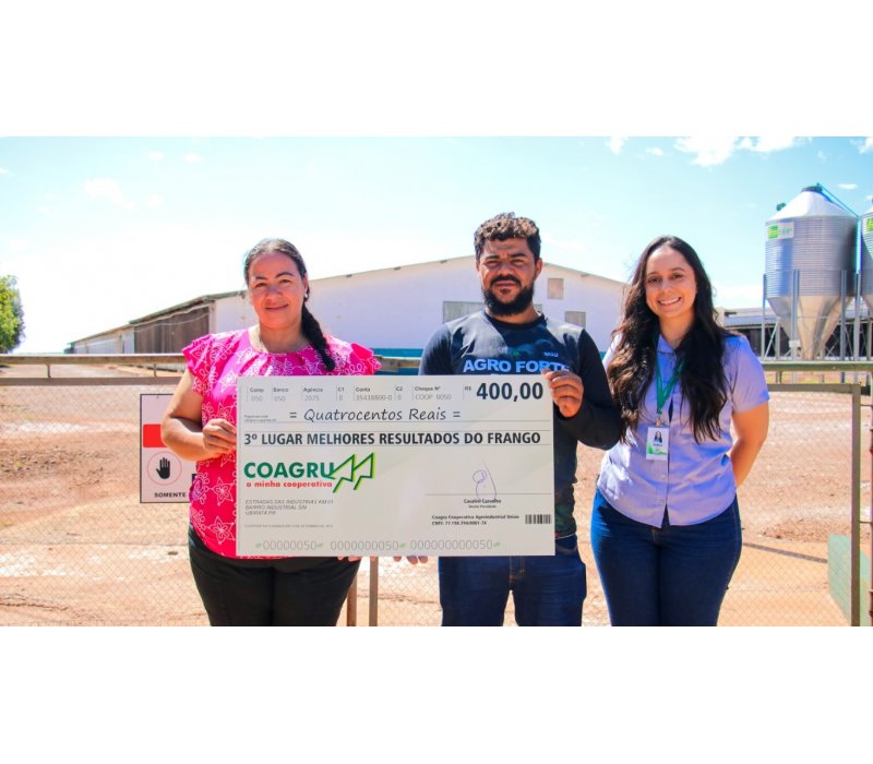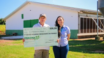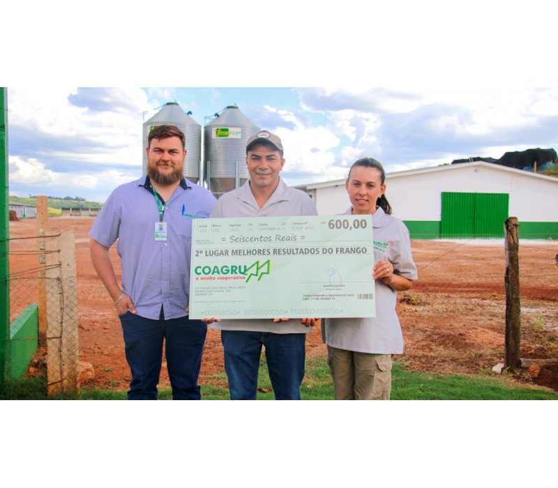 “Esse lote foi tranquilo de manejar, sem grandes dificuldades. Os pintainhos vieram com ótima qualidade e as condições de temperatura favoreceram o bom desempenho das aves. A ração, bem peletizada, contribuiu para melhor aceitação e resultado final, mostrando a qualidade do trabalho da Coagru. O acompanhamento da extensionistafoi fundamental ao longo do processo. Ser premiado é muito gratificante e motiva a buscar sempre melhores resultados. Para quem está começando, dedicação e empenho são essenciais.”