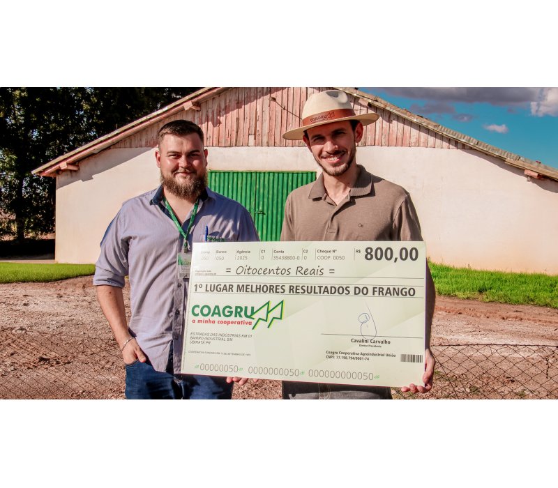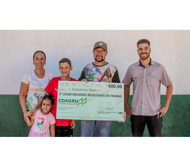 Fiquei muito satisfeito e surpreso com esse resultado e com a conquista do primeiro lugar, que marcou um novo recorde da Coagru. Esse desempenho é fruto da união de vários fatores: ração e pintainhos de qualidade, manejo adequado, assistência técnica constante e um clima favorável. A Coagru oferece um suporte excelente, com técnicos sempre disponíveis e ferramentas como o aplicativo para pedido de ração, que facilita muito a rotina. Sou grato a Deus por esse reconhecimento e incentivo todos os produtores a nunca desistirem.