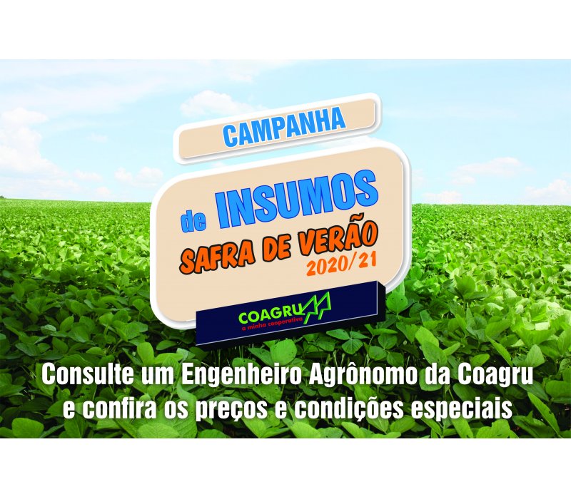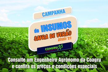 Campanhas de fornecimento de insumos têm como principal objetivo oferecer boas condições de compra, tecnologias que beneficiem o produtor e formas especiais para pagamento. Com isso, a Coagru lançou na última segunda-feira (13/04), a Campanha de fornecimento de insumos para a safra de verão 2020/2021, o que proporcionará ao quadro social a oportunidade de planejar antecipadamente a próxima safra, efetuando a aquisição dos insumos necessários para as culturas de verão.
