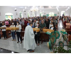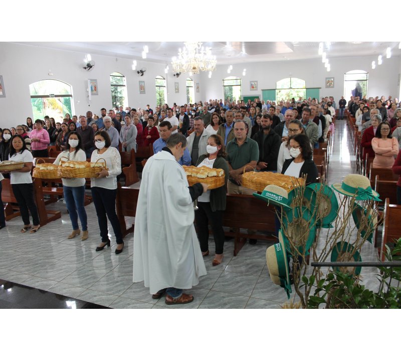 Padre Celso, que presidiu a celebração, disse em sua homilia “Agradeçamos à Deus pelo plantio e que ele abençoe nossa colheita e os frutos que ele nos dá. Que o Senhor possa abençoar as lavouras e os nossos agricultores e que professemos o evangelho que nos trouxe o mandamento de Amar a Deus sobre todas as coisas e ao próximo como a si mesmo” destacou o sacerdote. Ao término da celebração os pães e também as sementes foram abençoadas e depois distribuídas aos agricultores para serem lançadas ao solo na próxima safra de soja.
