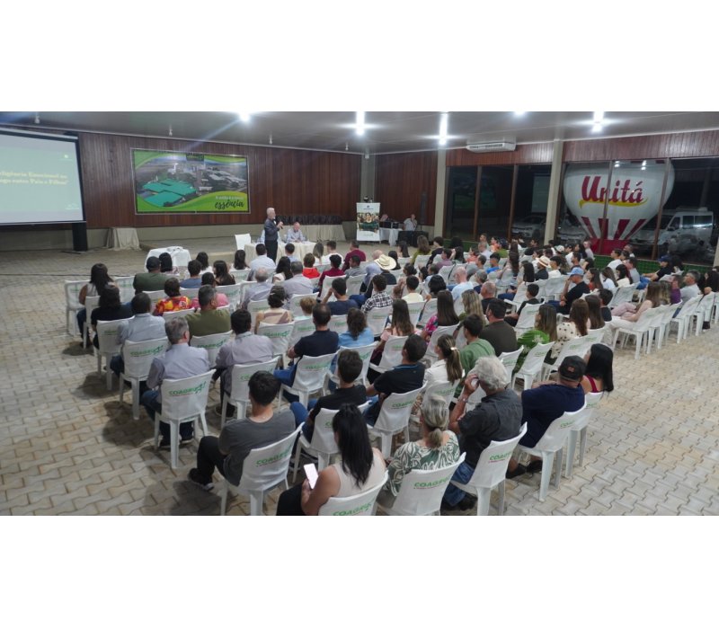 A programação do evento incluiu uma palestra do instrutor do Sescoop/PR, Manoel Teixeira Júnior, que abordou o tema “Inteligência emocional no diálogo entre pais e filhos”. A palestra focou na importância do entendimento e da comunicação entre as gerações no contexto da sucessão familiar, essencial para a perpetuação do sucesso da cooperativa.