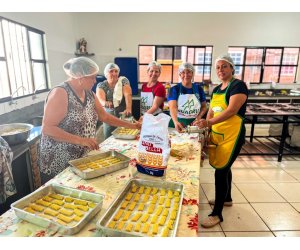 No dia 18 de setembro, as integrantes do Grupo Feminino CooperMulher (GFC) São João se reuniram no Salão da comunidade para uma ação beneficente. Com a farinha de trigo Anabella, doada pela Coagru, o grupo passou o dia preparando bolachas, pães caseiros e roscas, colocando todo o carinho na produção destinada à doação.