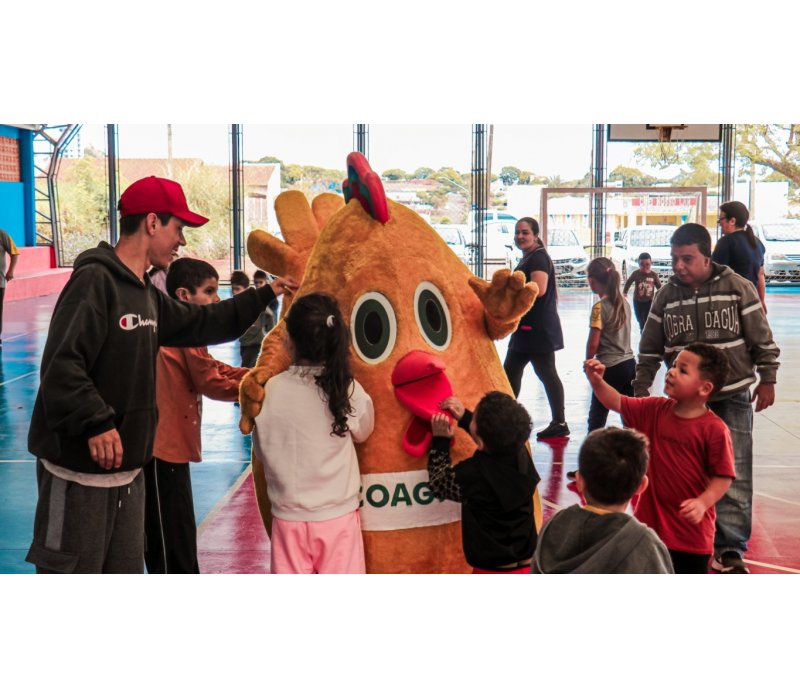 A presença do Franguinho demonstrou o cuidado da Coagru com a comunidade e a valorização das pessoas, levando o espírito cooperativista para além das atividades do campo e fortalecendo os laços com instituições que fazem a diferença no município.